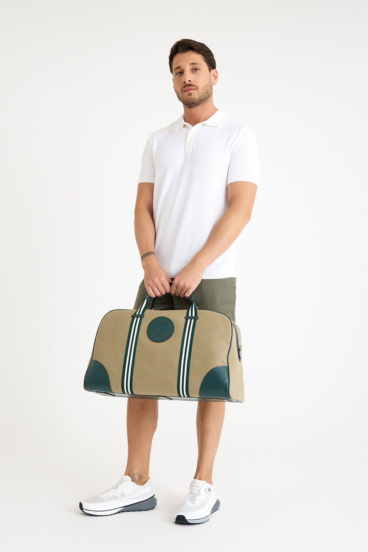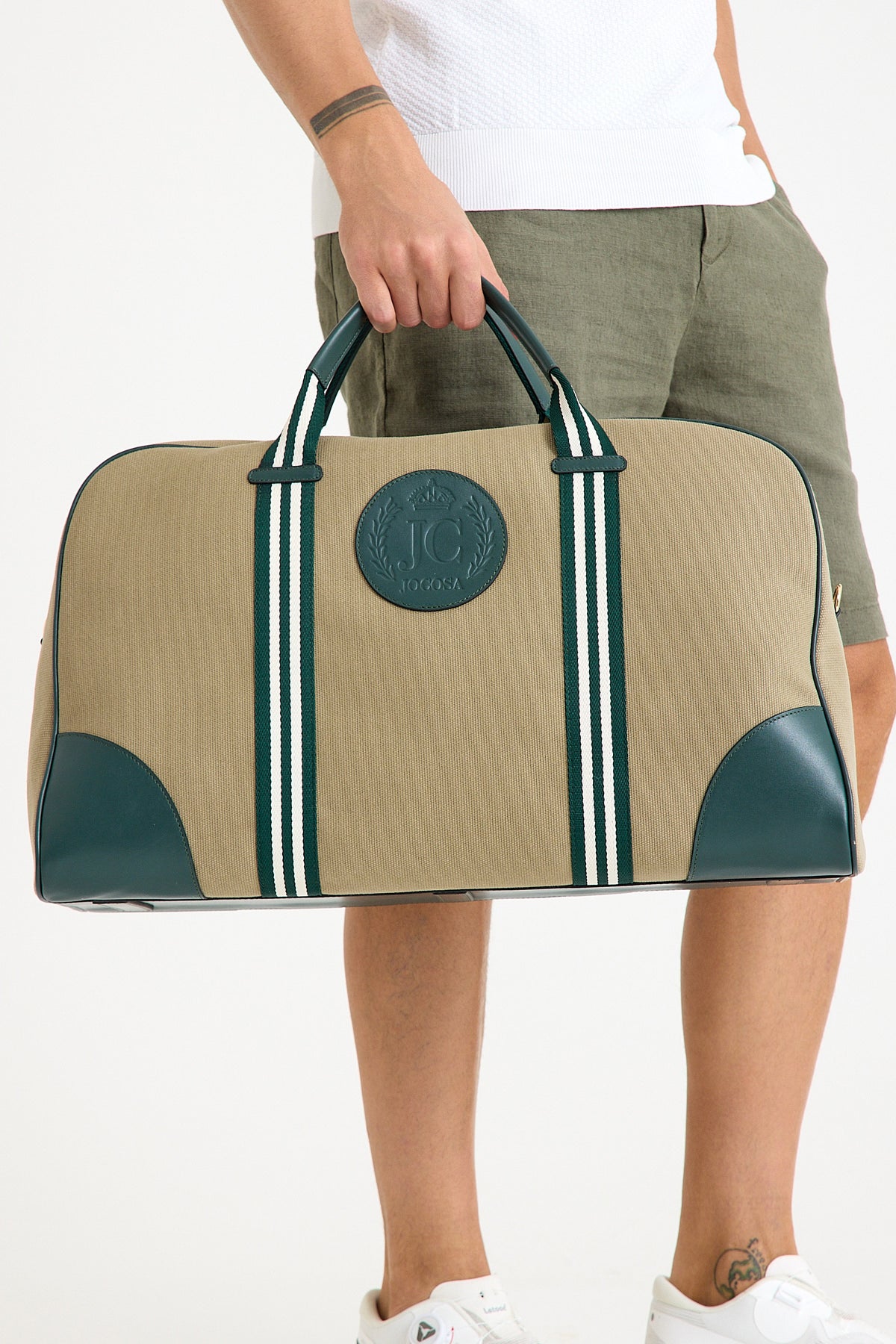 Khaki Canvas/Green Leather/White&Green Strap